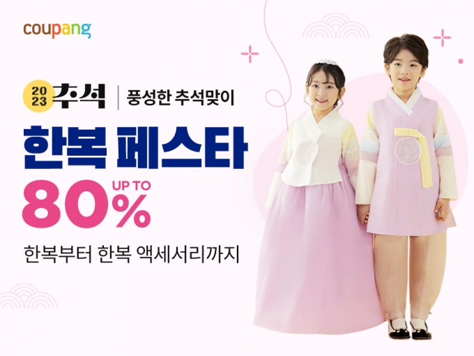 쿠팡은 추석 명절을 앞두고 한복과 노리개·머리핀·머리띠 등 다양한 악세서리를 최대 80% 할인된 가격에 판매하는 '한복 페스타'를 진행한다고 21일 밝혔다. 아이부터 성인, 반려동물이 입을 수 있는 국내 유명 한복 브랜드의 인기상품 1000여개를 합리적인 가격에 구매할 수 있다.