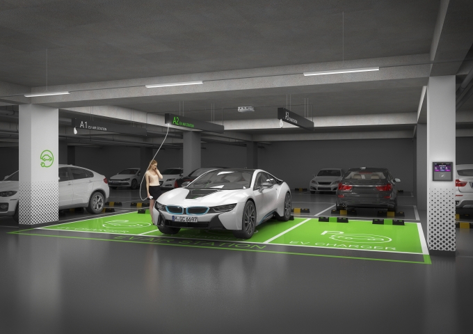 이번에 개발된 전기차 충전시스템은 천장에 충전기와 케이블을 설치하기 때문에 바닥면 공간 없이 설치 가능하다. 전기차 충전기의 불편함으로 지적돼왔던 주차공간 부족 문제의 대안이 될 수 있다.