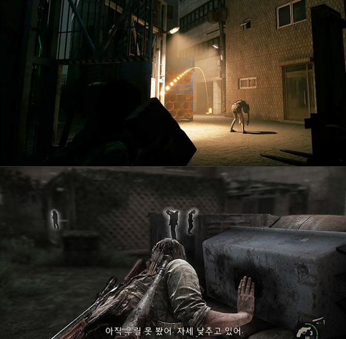 실제로 티저 영상에서 좀비와 직접적인 전투보다 돌이나 물건을 던져 주의를 돌리고 도망치는 모습이 주로 나온다. 이같은 장면은 글로벌 판매량 2000만장을 돌파한 미국 너티독이 개발한 희대의 명작 좀비 아포칼립스 생존게임 '라스트 오브 어스'와 유사하다.