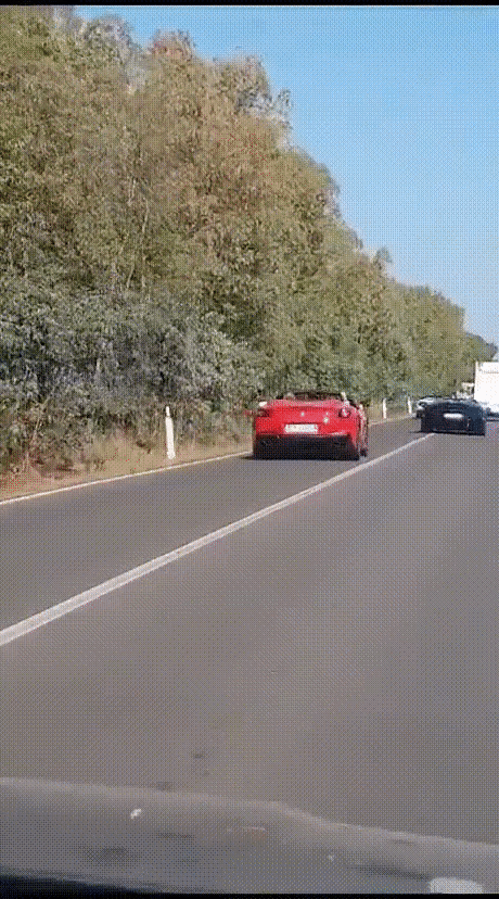 사고 여파로 람보르기니는 캠핑카 밑으로 깔려들어가 도로 바깥으로 미끄러졌고, 캠핑카는 전복됐다. 람보르기니를 들이받았던 페라리에서는 검은 연기가 피어오르더니 이윽고 불이 붙었다.
