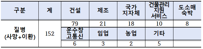 연도별로는 2018년 건설업 온열질환자는 33명(사망 7명)으로 가장 많았고, 2019년 11명(사망 2명), 2020년 9(사망 2명)명으로 감소하다가 2021년 11명(사망 2명), 2022년 15명(사망 4명)으로 다시 증가세를 보였다.