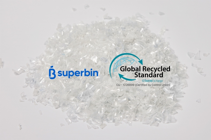 수퍼빈의 폐플라스틱 재생원료 'r-PET Flake'가 국제재생표준인증(GRS, Global Recycled Standard)을 취득했다.
