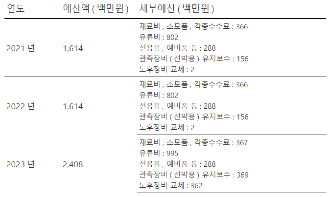 뿐만 아니라 기상관측선을 12년째 운영하고 있는 탓에 올해부터 관측장비 유지보수와 노후장비 교체로 인해 예산내역이 크게 증가하고 있다.