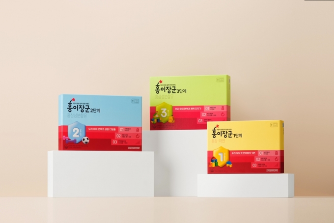 KGC인삼공사는 어린이 성장단계별로 '홍이장군'을 리뉴얼했다고 16일 밝혔다. 만 36개월 이상 아이들을 위한 1단계는 홍삼에 아연을 더한 복합기능성 제품으로 리뉴얼돼 더블 건강케어가 가능하다. 만 4~6세 어린이들의 면역력과 성장에 디딤돌이 되기 위해 2단계에는 홍삼에 칼슘, 마그네슘, 비타민D, 엽산과 같은 부원료를 추가했다. 만 7~9세의 초등학생들은 3단계를 통해 면역과 체력을 함께 관리할 수 있도록 홍삼에 비타민 B군 8종, 실크 아미노산 등의 부원료를 추가했다.