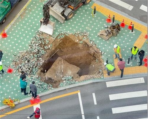 앞서 지난달 12일 오전에도 서울 강남구 지하철 9호선 언주역 8번 출구 앞 봉은사로에 지름 1m, 깊이 1.5m가량의 땅꺼짐 현상이 발생한 바 있다.