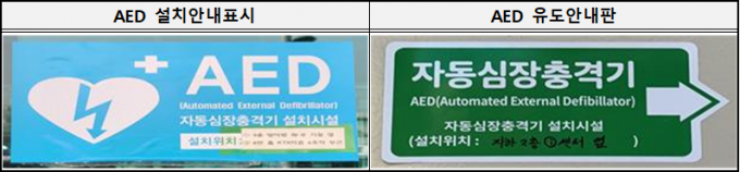 심정지 발생시 골든타임 4분안에 최대한 신속하게 조치하는 것이 중요하다. 따라서 지하철역 출입구에는 AED가 설치돼 있음을 쉽게 알 수 있도록 '설치안내표시'를 해야 하고, 역내에는 AED 위치를 찾기 쉽게 '유도안내판'을 부착할 필요가 있다.