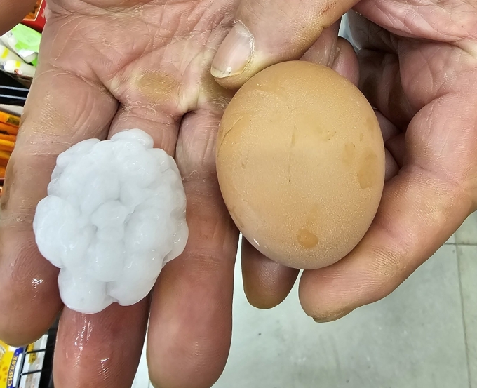 포천 일대에서는 지름 1㎝ 안팎의 우박이 관측됐고, 오후 8시께에는 남양주와 구리 등에 10분간 동전만한 우박이 떨어지기도 했다. 한 누리꾼이 소셜서비스(SNS)에 올린 사진을 보면 경기 하남에는 달걀만한 우박이 떨어지기도 했다.