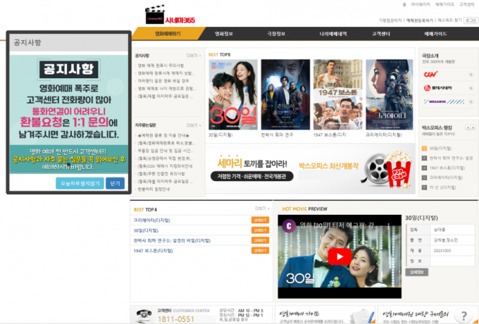 한국소비자원과 경기도가 케이마케팅그룹이 운영하는 온라인 영화예매사이트 '시네마365'(www.cinema365.net) 관련 소비자피해가 증가하고 있다며 31일 소비자피해 주의보를 발령했다.