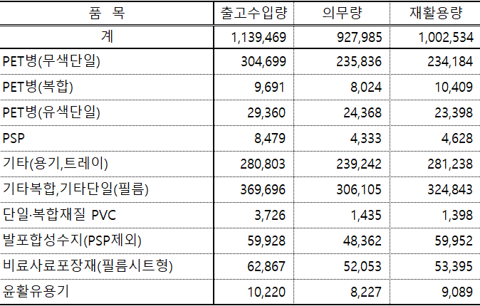 지난 2021년 기준 환경부의 'EPR대상 포장재 발생량 및 재활용량 통계'를 보면 플라스틱 포장재 출고수입량은 113만9469톤으로, 이 가운데 물리적 재활용이 이뤄지고 있는 '무색단일 페트(PET)병'은 30만4699톤이다. 이 가운데 지난 9월 기준 실제 페트병에 다시 투입된 재생페트는 0.4% 수준인 1200톤에 불과했다. 아직 수거체계 미비, 수요 저조 등의 이유로 대부분의 플라스틱 폐기물이 소각·매립되고 있는 실정이다.