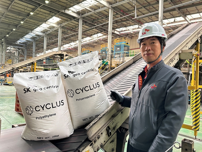 SK지오센트릭이 재활용 플라스틱 원료를 섞은 포장재를 자체 생산하고 활용한다.