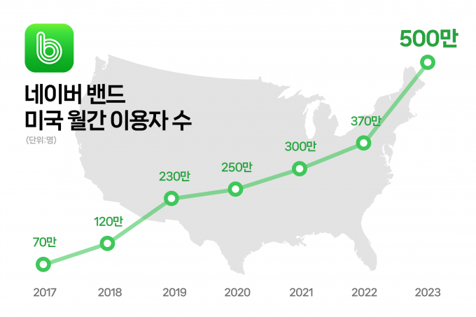 네이버 '밴드'가 미국 진출 10년만에 월간 활성사용자(MAU) 500만명을 돌파했다.