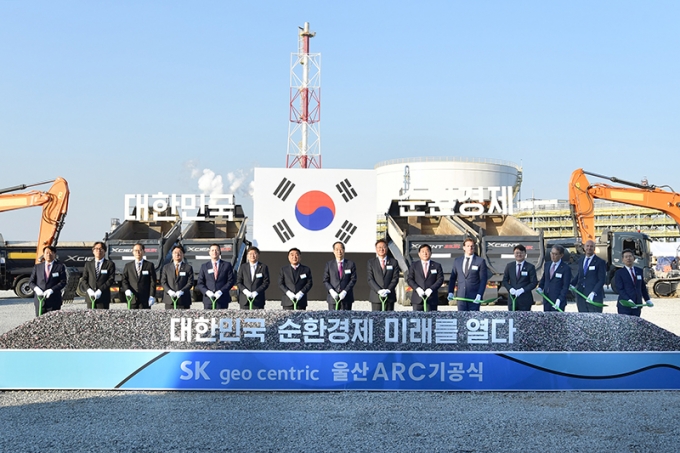 SK지오센트릭은 SK이노베이션 울산콤플렉스(CLX) 내 21만5000㎡ 부지(울산광역시 남구 고사동)에 플라스틱 재활용 클러스터 '울산ARC'(Advanced Recycling Cluster) 조성 기공식을 15일 개최했다. 축구장 22개와 맞먹는 규모로 조성되는 이 공사에 1조8000억원이 투입돼 오는 2025년말 완공된다.