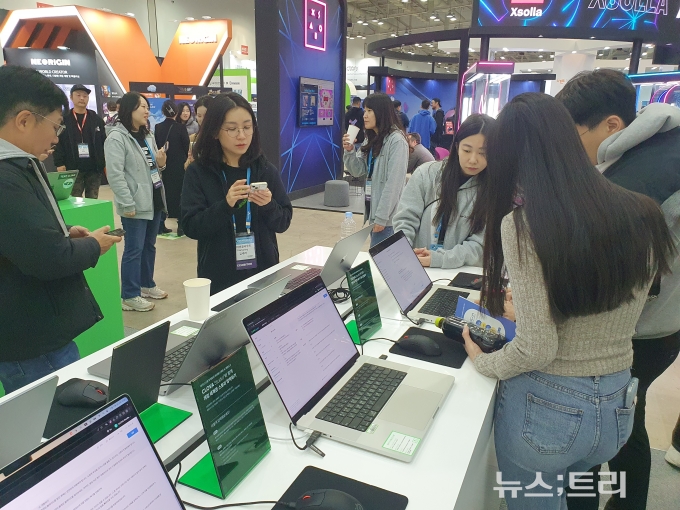 16일 부산 벡스코에서 개막된 국내 최대 게임쇼 '지스타 2023' B2B(기업간거래)관에 생성형 인공지능(AI)을 활용한 게임 개발도구(툴)들이 등장했다.