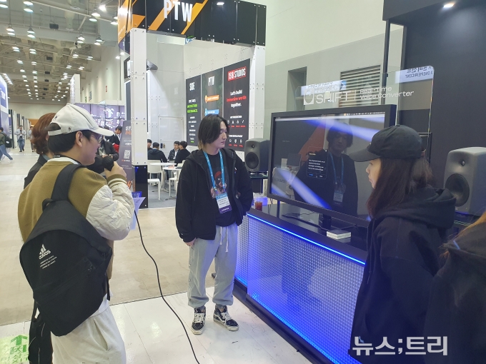 하이브의 AI 음성전문 자회사인 수퍼톤도 '지스타 2023'에 참가해 AI 음성솔루션 '스크린플레이'와 '시프트'를 소개했다.
