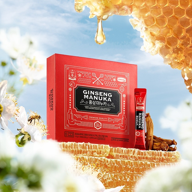 '홍삼마누카'는 124년 역사의 글로벌 1위 홍삼 브랜드 정관장 홍삼과 50년 전통의 세계적인 마누카꿀 브랜드 콤비타 꿀의 만남으로 출시 전부터 화제가 된 제품이다.