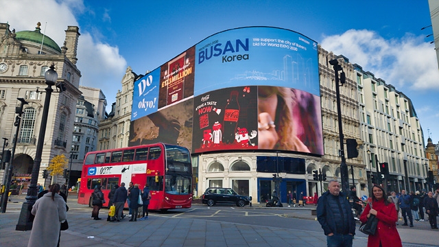 ▲삼성전자가 내건 '부산엑스포' 유치 열기를 알리는 런던 피카딜리 옥외광고 (사진=삼성전자)