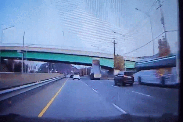 온라인 커뮤니티에 사고 당시 후방에서 운전하던 차량의 블랙박스 영상이 올라왔는데, 덤프트럭은 적재함을 세워놓은 채 도로를 달리고 있었다. 교량 밑을 지날 때 세워진 적재함 부분이 교량 밑부분에 걸렸다. 충돌 충격으로 운전석이 있는 차량 앞부분도 들리면서 트럭이 교량과 도로 사이에 끼어버렸다.