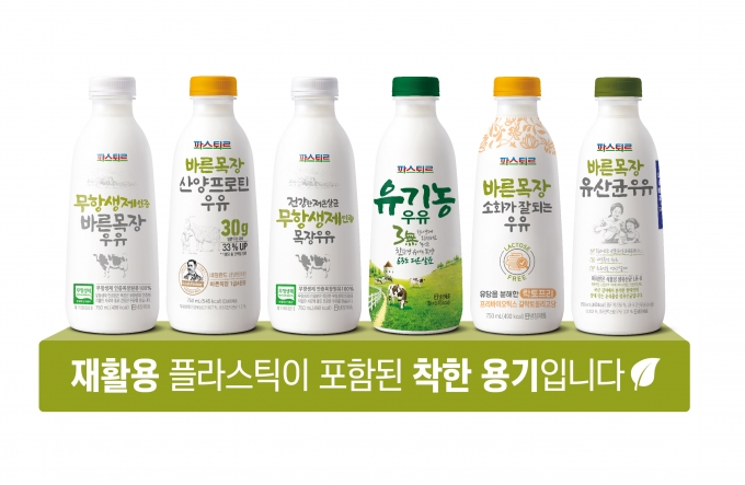 파스퇴르 750ml 전 제품이 재활용 페트를 25% 섞어 만든 용기에 담겨 판매된다.
