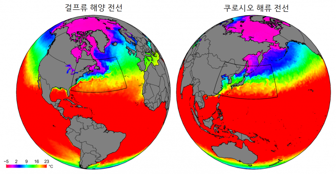 12일 한국과학기술연구원(KIST) 지속가능환경연구단 성미경 박사와 연세대학교 비가역적기후변화 연구센터 안순일 교수연구팀은 우리나라에서 여름철 나타나는 이상고온과 겨울철 발생하는 이상한파에 직접적인 영향을 미치는 요인이 '해양전선'이라는 사실을 규명했다. 해양전선은 열을 흡수하는 내뿜는 과정에서 '제트기류'에도 영향을 미치는 것으로 나타났다.