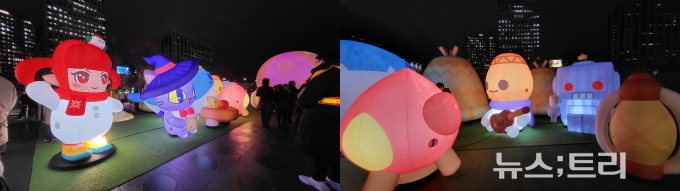 화이트홀 앞에는 넥슨의 대표 액션RPG '던전앤파이터'의 캐릭터 '아라드 프렌즈'가 떡하니 자리했다. 아라드 프렌즈의 멤버인 단진, 랜디, 플랑, 베히 그리고 스노우메이지는 거대한 조형물답지 않게 귀여움을 한껏 내뿜으며 아이들의 관심을 끌었다. 시민들은 캐릭터 조형물 사이를 오가며 기념사진을 찍느라 여념이 없는 모습이다.