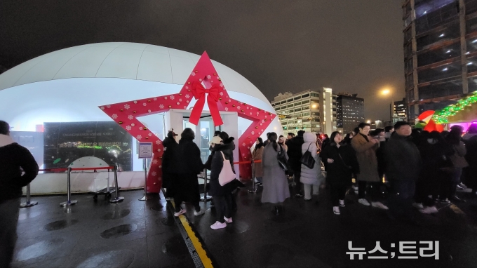 사람들에게 가장 인기가 많은 곳은 '빛초롱네컷' 사진 부스였다. 추운 날씨에도 불구하고 인생사진을 남기려는 사람들의 대기줄이 거대한 돔형 부스를 반바퀴 훌쩍 넘어설 정도로 길게 늘어서 있었다. 이밖에도 마켓 곳곳에 포토존이 다채롭게 꾸며져 있었다.