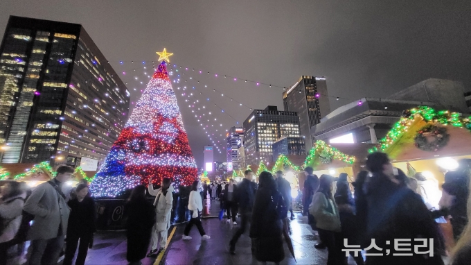 빛초롱축제와 함께 열린 '2023 광화문광장 마켓'도 지난해보다 2배로 확장되며 크리스마스 분위기를 물씬 풍겼다. 수공예품, 액세서리, 천연화장품, 지역 먹거리 등 부스마다 다양한 상품들이 즐비했다. 광장 한쪽에 마련된 먹거리부스에서는 식욕을 자극하는 냄새로 지나는 행인들의 발길을 붙잡았다. 마켓존 한가운데 놓인 거대한 트리는 볼거리를 한층 풍성하게 해줬다. 트리 앞에서 기념사진을 찍는 시민들은 만면에 웃음이 가득했다.