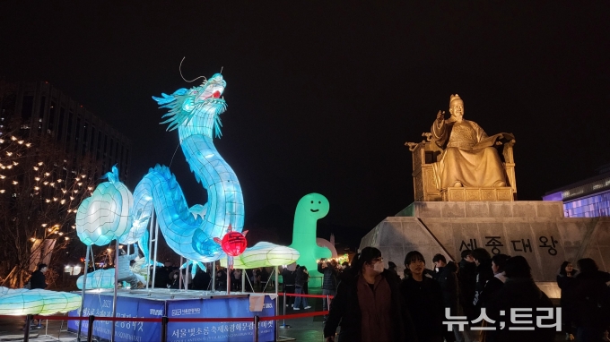 서울 세종로 일대의 밤거리가 연말연시를 맞아 오색찬란한 빛으로 물들었다. 지난 15일부터 이 일대에서 '2023 서울빛초롱축제'와 '광화문광장 마켓'이 열리고 있기 때문이다. 이 일대는 한지 등(燈)과 함께 미디어파사드, 프로젝션 맵핑, 인터랙티브 콘텐츠 등 신기술을 접목한 '용 조형물'과 '화이트홀', 파도 위의 거북선을 연출한 '이순신 불멸의 혼' 등 다양한 볼거리로 서울의 야간명소로 자리매김하고 있다.