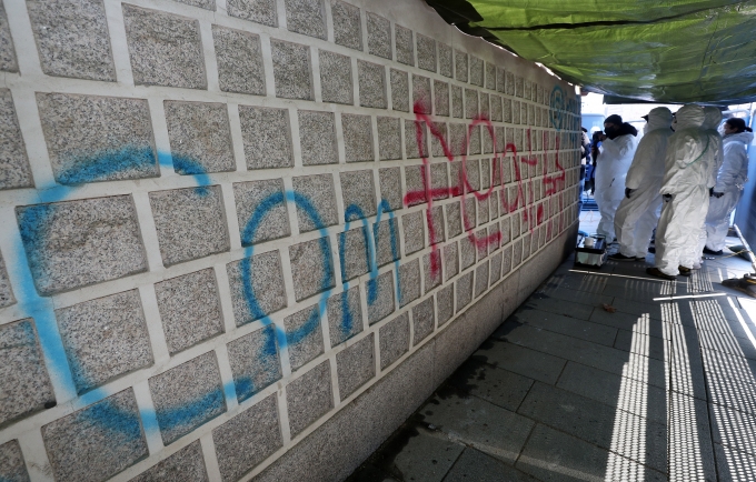 이들은 지난 16일 새벽 1시42분께 서울 종로구 경복궁 고궁박물관과 영추문(서문) 앞 담벼락에 스프레이로 불법 영상공유 사이트 이름 등을 낙서한 혐의를 받고 있다. 이들은 해당 사이트 낙서를 쓰면 돈을 주겠다는 지인의 제안을 받은 후 범행을 저질렀다고 진술했다. 이에 따라 범행을 제안한 인물에 대한 수사도 진행될 예정이다.