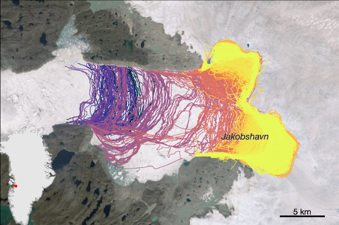 미국 항공우주국(NASA) 제트추진연구소(JPL) 차드 그린 박사연구팀이 1985~2022년 매달 찍힌 그린란드 빙하의 위성사진에 24만여개의 빙하종점 위치를 찍어 인공지능(AI)으로 면적추이를 분석한 결과, 지난 38년동안 그린란드 빙하면적이 5000㎢ 소실됐다. 무게로 치면 약 1조톤에 달한다.