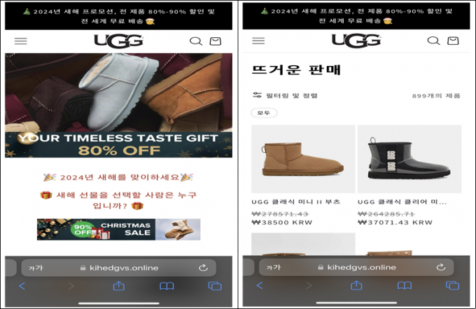 피해자들은 모두 인스타그램 광고를 통해 해외쇼핑몰에 접속한 것으로 확인됐다. 쇼핑몰들은 어그의 브랜드 로고, 제품 사진 등을 그대로 사용하는가 하면 80% 이상의 높은 할인율을 내세워 구매를 유도하고 있었다.