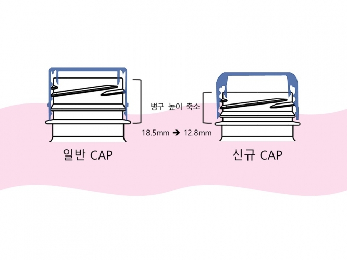 롯데칠성음료는 병구 높이를 18.5mm에서 12.8mm로 낮춰 페트병 500ml 기준 프리폼 중량을 13.1g에서 11.6g로 줄이고 ET캡(Extra Tall Cap)을 적용한다고 1일 밝혔다. 이번 경량화를 진행하면 용량별 용기 중량이 최대 12% 가벼워질 전망이다.