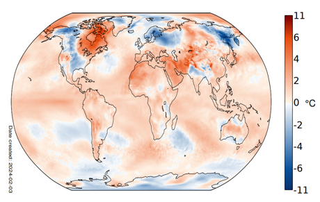 유럽연합(EU) 기후변화 감시기구 코페르니쿠스 기후변화연구소(C3S)는 올 1월 전세계 평균기온 수은주가 13.14℃를 찍고 종전 최고치인 2020년 1월 13.02℃를 제쳤다고 8일(현지시간) 밝혔다. 이는 지난 1991~2020년 1월 평균기온과 비교했을 때 0.7℃ 높고, 19세기 산업화 이전대비 1.66℃나 높은 수치다.