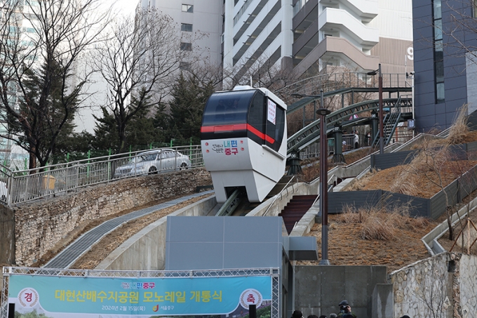 16일 서울 중구는 신당현대아파트부터 대현산배수지공원을 잇는 110m 구간의 모노레일을 지난 15일부터 운행을 시작했다고 밝혔다.
