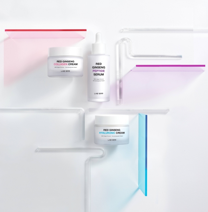 랩1899의 레드진생 세럼과 크림은 주름개선 기능성 화장품으로 홍삼 효능을 피부에 최적화시켰다. 멀티 탄력, 보습 충전, 피부결 개선에 특화돼 있다.