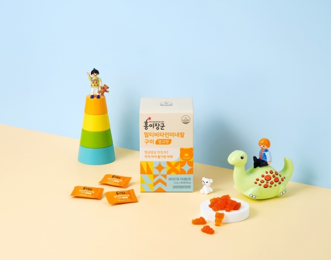 '홍이장군 멀티비타민미네랄 구미 망고맛'은 어린이들이 핵심 영양성분을 즐겁게 섭취할 수 있는 건강기능식품이다. 체내 에너지 대사에 필요한 비타민 A, E, C, B1, B3, B6, 비오틴과 정상적인 면역 기능에 필요한 아연, 셀레늄을 과학적으로 설계했다.