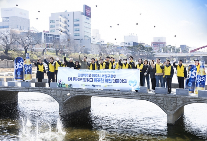 오비맥주가 '세계 물의 날'을 맞아 하천 정화활동을 펼쳤다.