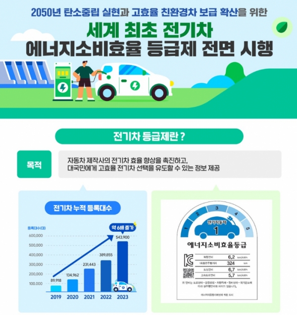 전기자동차도 가전제품처럼 '에너지효율 등급제'가 시행됐다. 이에 따라 국내에서 시판되는 전기차는 에너지효율에 따라 1~5등급까지 라벨이 부착된다.