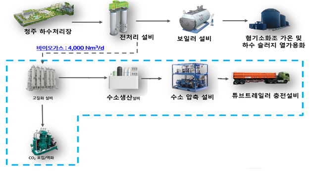 '바이오가스 기반 수소 생산사업'은 수소차 수소 공급의 안정화 및 지역자립형 수소생산을 높이기 위해 환경부 소관의 재생에너지인 바이오가스를 활용해 수송용 수소를 생산한다.