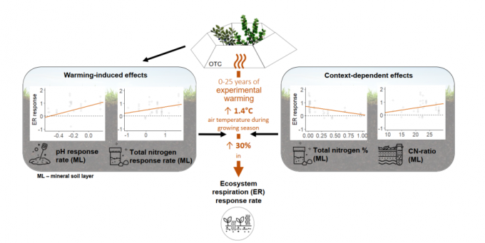 지역별 탄소배출량은 토양의 환경특성에 따라 달라졌다. 토양의 질소 함유 비율이 낮거나 질소에 비해 탄소 비율이 높은 '빈영양' 상태에서 기온상승에 의한 탄소배출량 증가폭이 더 크게 나타났다.