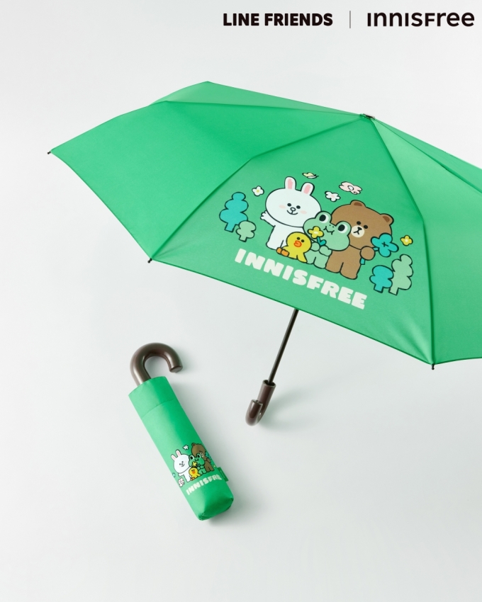 '이니스프리 with 라인프렌즈 3단 접이식 공병 우산'은 이니스프리의 공병수거 캠페인을 통해 수거된 약 160kg의 PCR을 활용해 우산 손잡이(공병 활용 PCR 플라스틱 50%)와 헤드(공병 활용 PCR 플라스틱 50%) 부분을 제작했다. 또 방수 원단은 페트 재생원료 100%를 사용했다. 우산은 레티놀 앰플 2개 기획옵션 또는 비타C 세럼 2개 기획옵션 구매시 5900원에 구매할 수 있다.