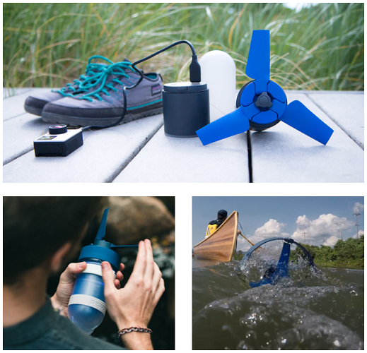 텀블러 정도의 크기인 '이노마드 우노'는 터빈과 발전기와 배터리까지 내장된 몸통 그리고 방수캡으로 구성돼 있다. 쉽게 조립할 수 있고 휴대하기 편리하다는 게 장점이다. 프로펠러 모양의 터빈을 펼쳐 물에 넣어놓고 있으면 전기가 만들어진다. 내장 배터리에 저장된 전기는 보조배터리처럼 스마트폰이나 태블릿PC 등에 언제든 사용할 수 있다. LED가 내장돼 있어 조명으로도 사용할 수 있다.