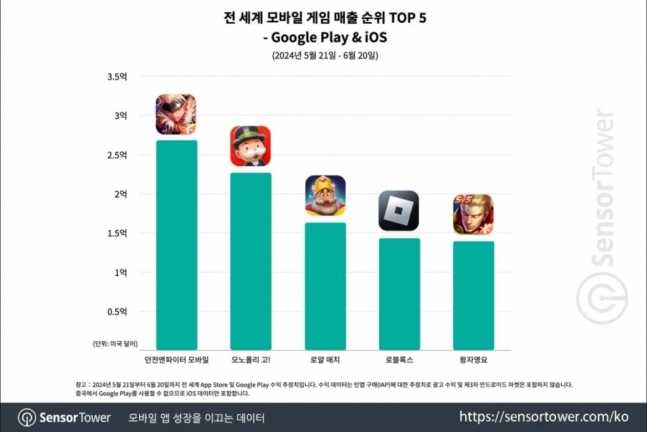 25일 앱마켓 시장조사업체 센서타워가 발표한 보고서에 따르면 지난 5월 21일 중국에 정식 출시된 넥슨 '던전앤파이터 모바일'이 이달 20일까지 중국 애플 앱스토어 추정치 기준 2억7000만달러(약 3743억원)를 달성해 모바일게임 전세계 매출 1위를 기록했다.