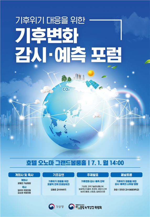 또 '기후위기 대응을 위한 감시·예측의 나아갈 방향'을 주제로 한 토론회에서 각계 전문가들은 부처별 정보공유 및 대국민 활용 편의성 증진을 위해 범정부 차원의 통합적인 감시·예측체계를 구축할 필요가 있다고 입을 모았다. 특히 인공지능(AI) 기술 등을 활용한 최신 지구시스템 모형화(모델링) 등 국제적 수준의 기후기술 및 기반 시설 구축 전략을 제시했다.