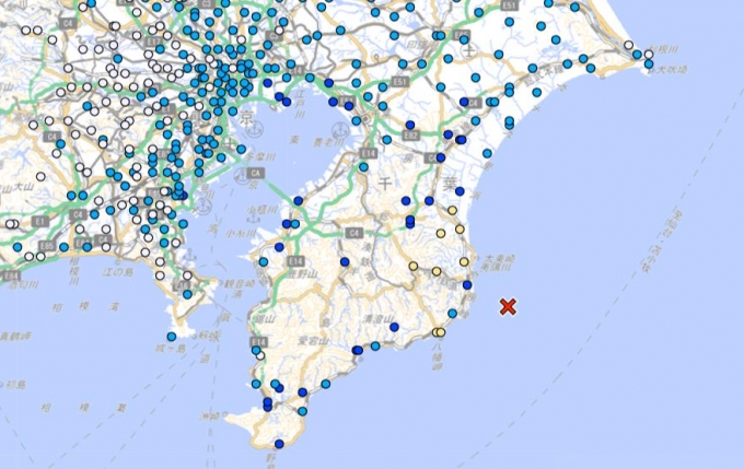 일본 기상청도 지바현 앞바다에서 발생한 지진으로 지바현 일부 지역에서는 '진도4'의 흔들림이 감지됐다고 밝혔다.