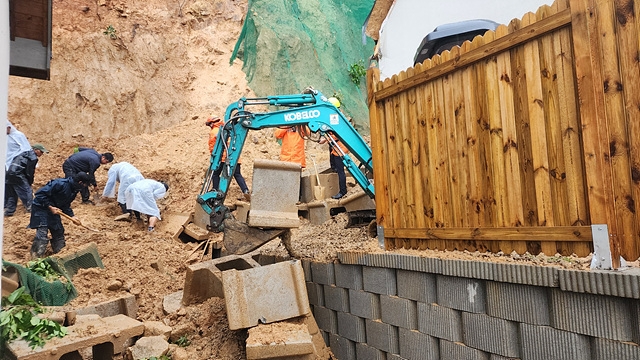 이 지역은 전날 오후 9시부터 현재까지 154㎜의 비가 내렸다. 소방 당국은 이 집 뒤편에서 굴착기 등을 동원해 약 1시간 30분동안 50대 남편 A씨를 수색하고 있지만 토사가 빗물에 계속 흘러내려 작업에 어려움을 겪고 있다.
