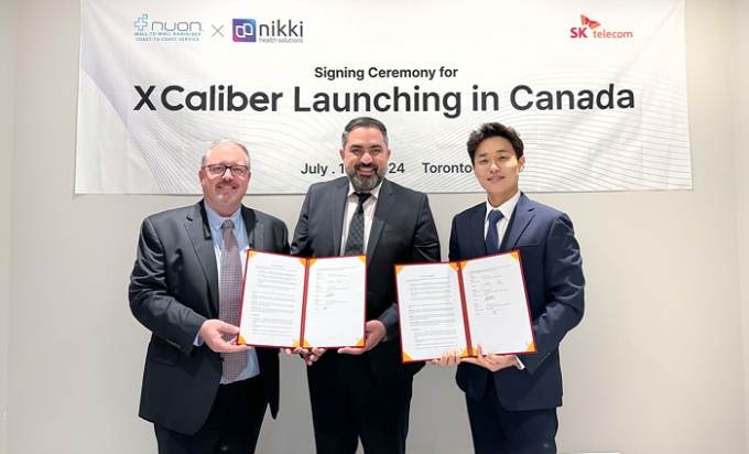 SKT는 캐나다 반려동물 의료장비업체 '뉴온앤니키'와 미국 엑스레이 장비 유통사 '마이벳이미징'과 각각 엑스칼리버 유통계약과 업무협약(MOU)을 맺어 북미 전역에 솔루션을 선보일 수 있게 됐다고 15일 밝혔다.