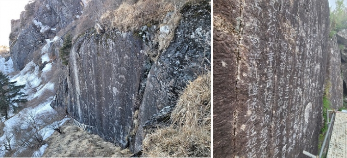 지리산의 힘을 빌어 일제를 물리치고자 하는 의병의 염원이 새겨진 바위글씨(石刻)가 천왕봉 바로 아래에서 발견됐다.