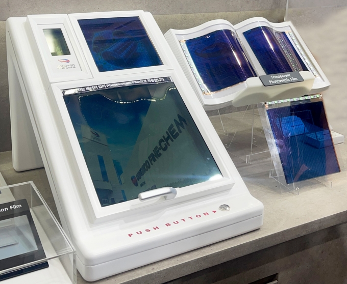 연구팀은 또한 동우화인켐 부스에서 차량용 스마트윈도우에 반투명 태양광 필름을 전력원으로 적용한 모빌리티를 전시했다.