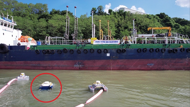 SK이노베이션은 해양오염 사고 발생시 스타트업 쉐코가 개발한 유회수기 로봇을 투입해 초동 대응하기 위한 합동 방제훈련을 실시했다고 21일 밝혔다. SK이노베이션의 탱크터미널 자회사인 SK엔텀이 주도해 지난 20일 울산Complex(이하 울산CLX) 인근 SK부두에서 진행된 이번 방제훈련에는 장호준 SK엔텀 사장과 임직원, SK엔텀 협력사인 한유마린서비스, 에쓰오일(S-OIL) 해상방재팀 등 울산지역 정유사가 합동으로 참여했다.