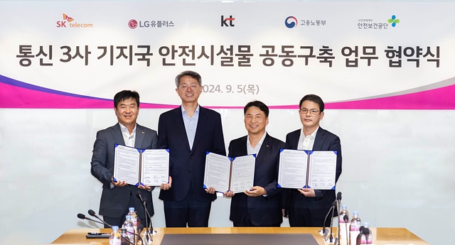 KT와 SK텔레콤, LG유플러스 등 통신3사가 통신공사나 철탑 현장작업자의 안전을 확보하고 사고를 방지하기 위해 기지국 안전시설물을 공동구축하기로 했다. 이를 위해 3사는 서울시 중구에 위치한 SK남산사옥에서 '기지국 안전시설 장치 공동 구축'을 위한 업무협약(MOU)을 체결했다고 5일 밝혔다.